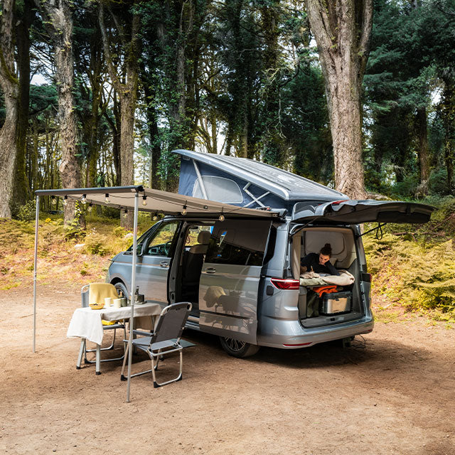 Cleveres Raumkonzept & flexible Bestuhlung:Dank zwei Schiebetüren, drehbaren Vordersitzen und verschiebbaren Einzelsitzen passt sich der Innenraum jeder Alltagssituation oder Campingidee an – ob Kochen, Schlafen oder Stauraum fürs Surfbrett.Rundum durchdacht:Verdunkelung, optionale Fliegengitter, serienmäßige Markisenschienen und viele clevere Details machen jede Fahrt zum Wohlfühl-Erlebnis.
